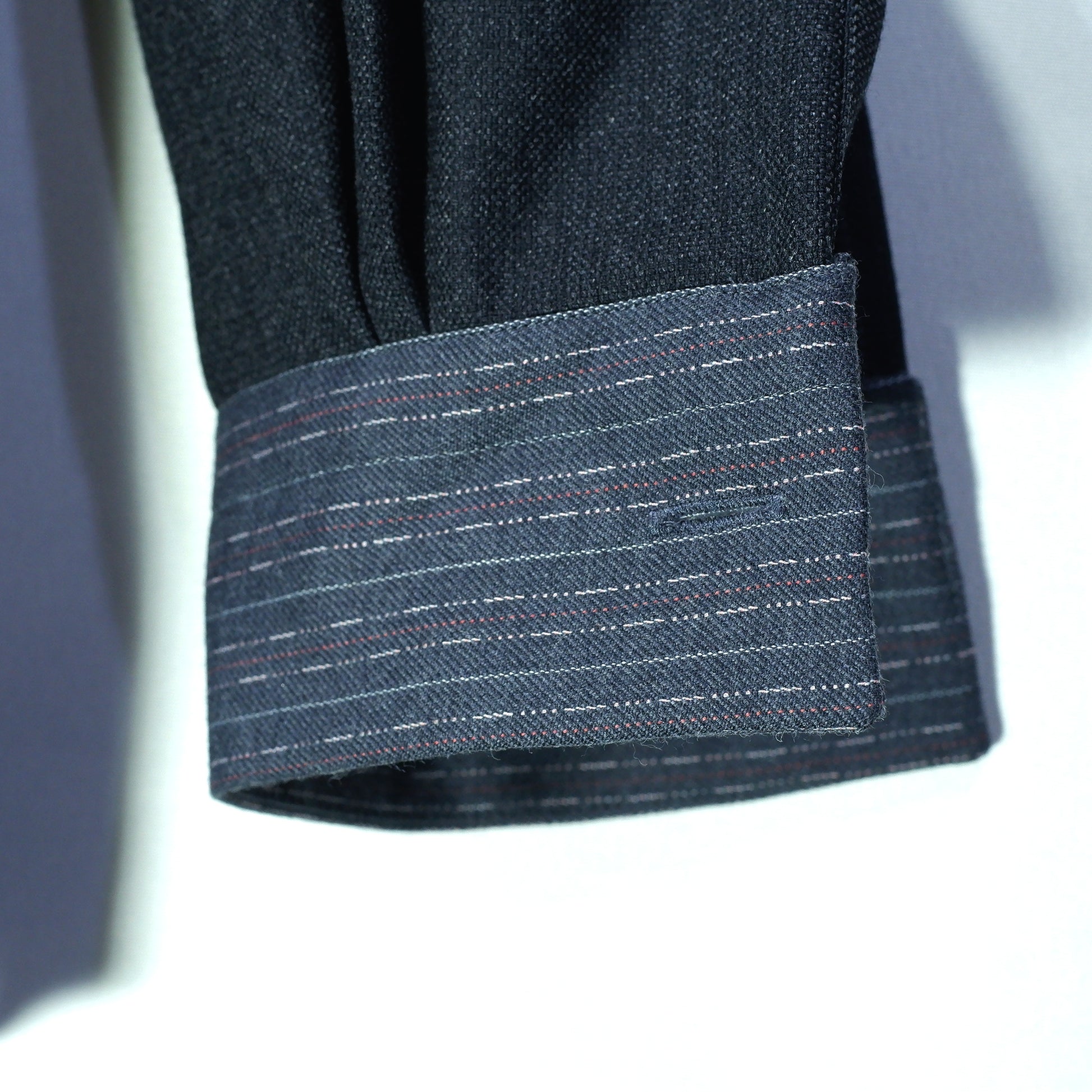 高級スーツ生地ならではの質感・重量感・表情を、シャツという日常的なアイテムに落とし込んだ特別な一着です。プロダクト自体がアーカイブであり、同一の再現ができない希少性こそが価値となっております。