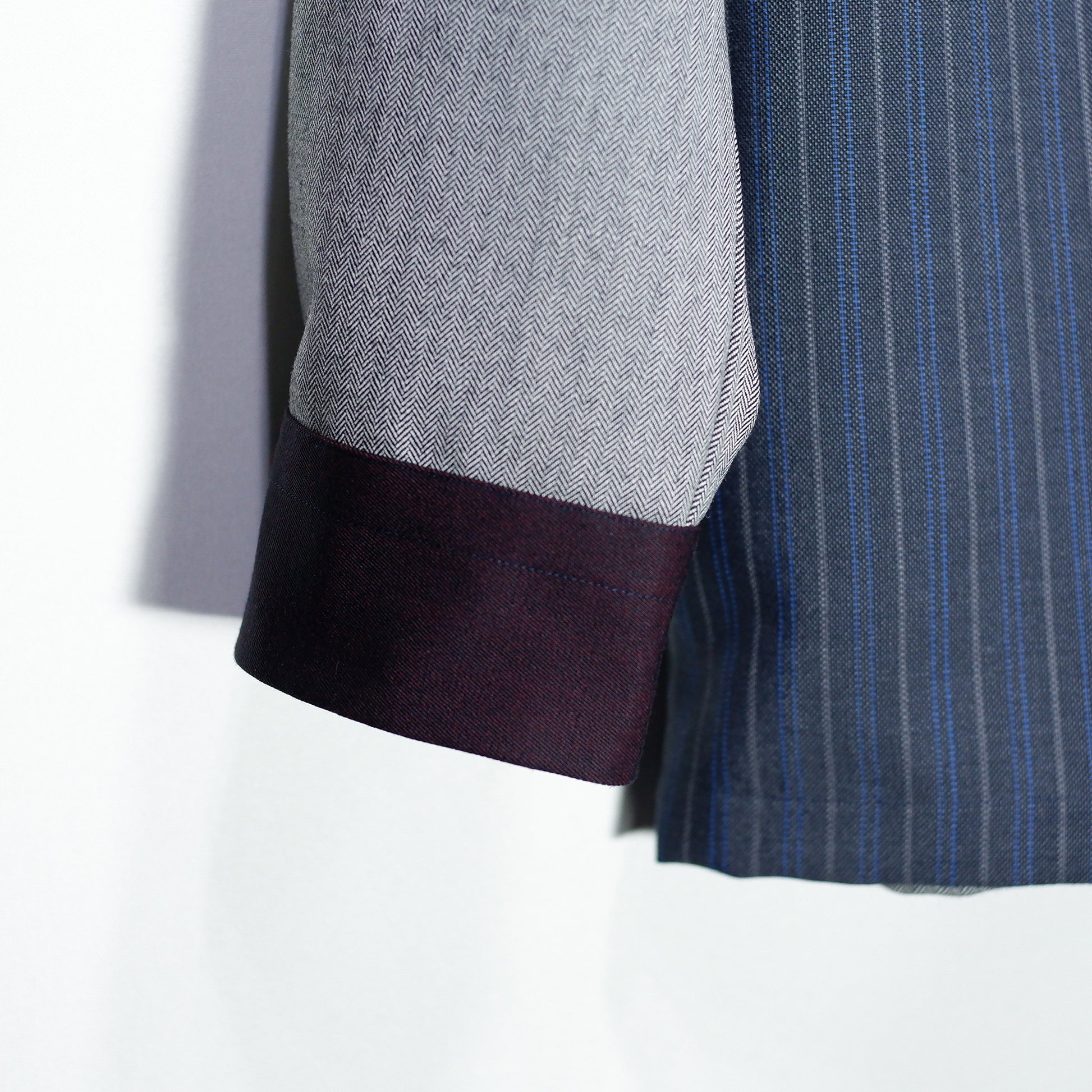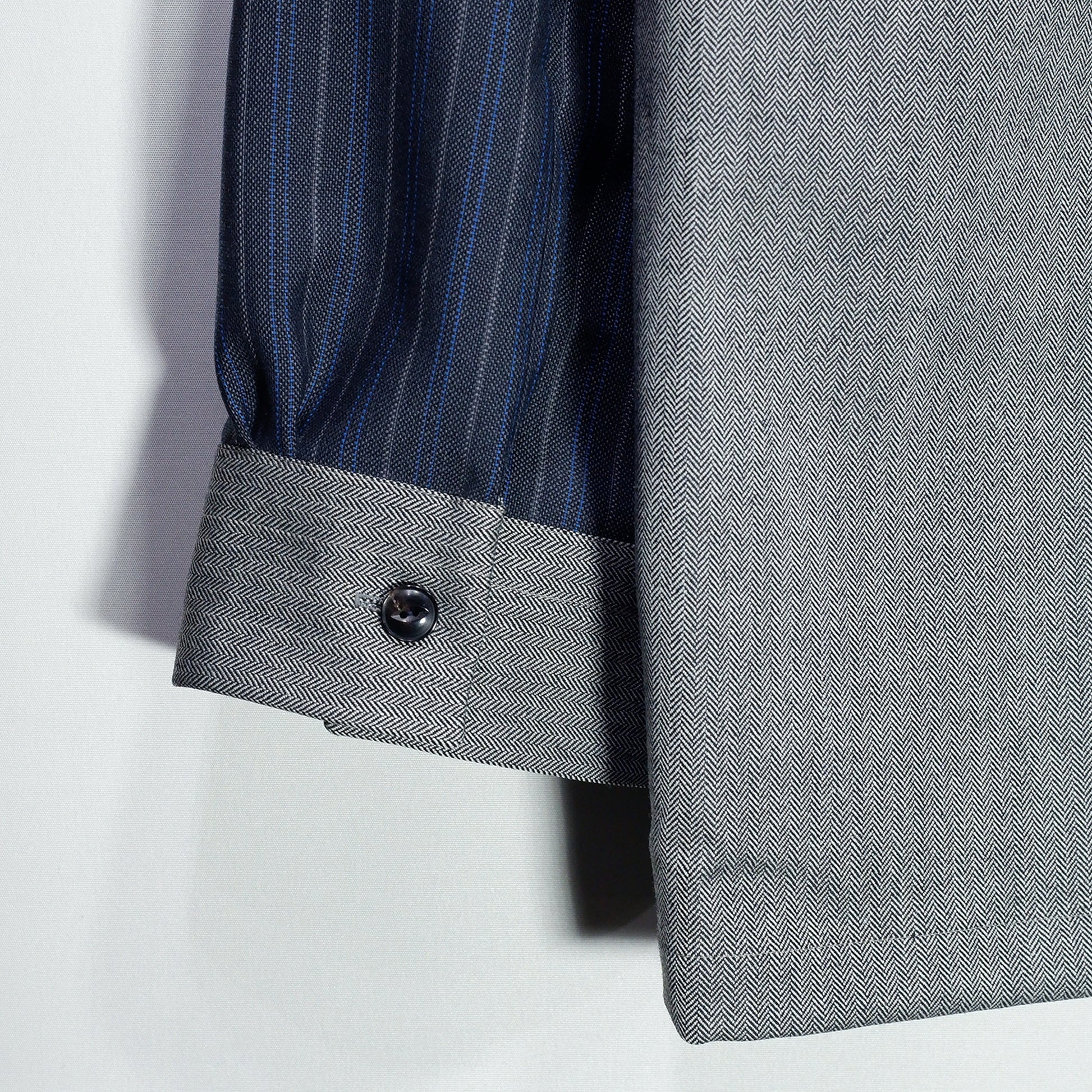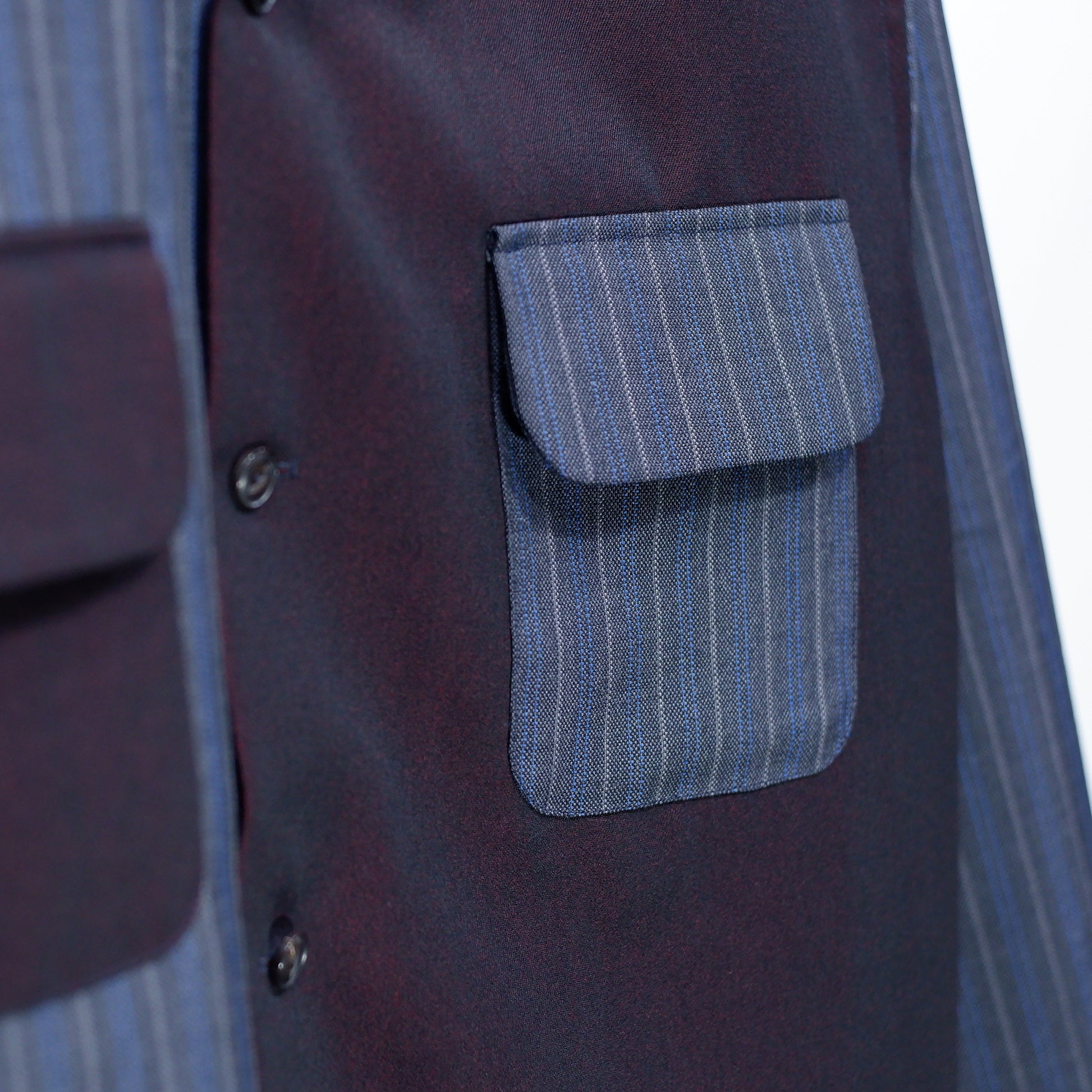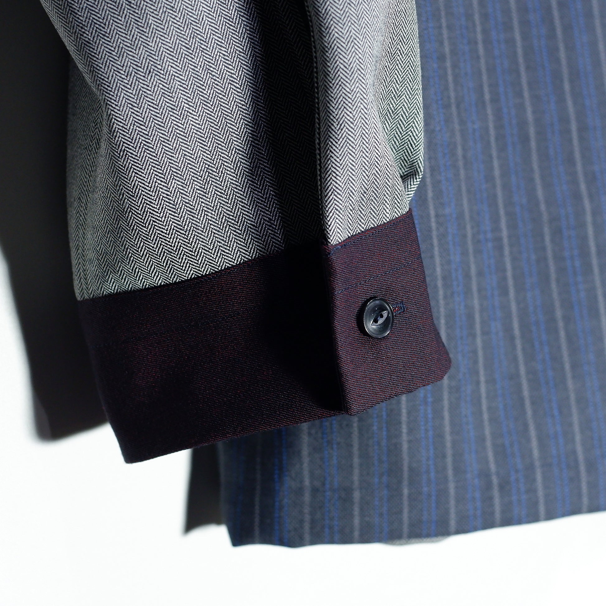 高級スーツ生地ならではの質感・重量感・表情を、シャツという日常的なアイテムに落とし込んだ特別な一着です。プロダクト自体がアーカイブであり、同一の再現ができない希少性こそが価値となっております。