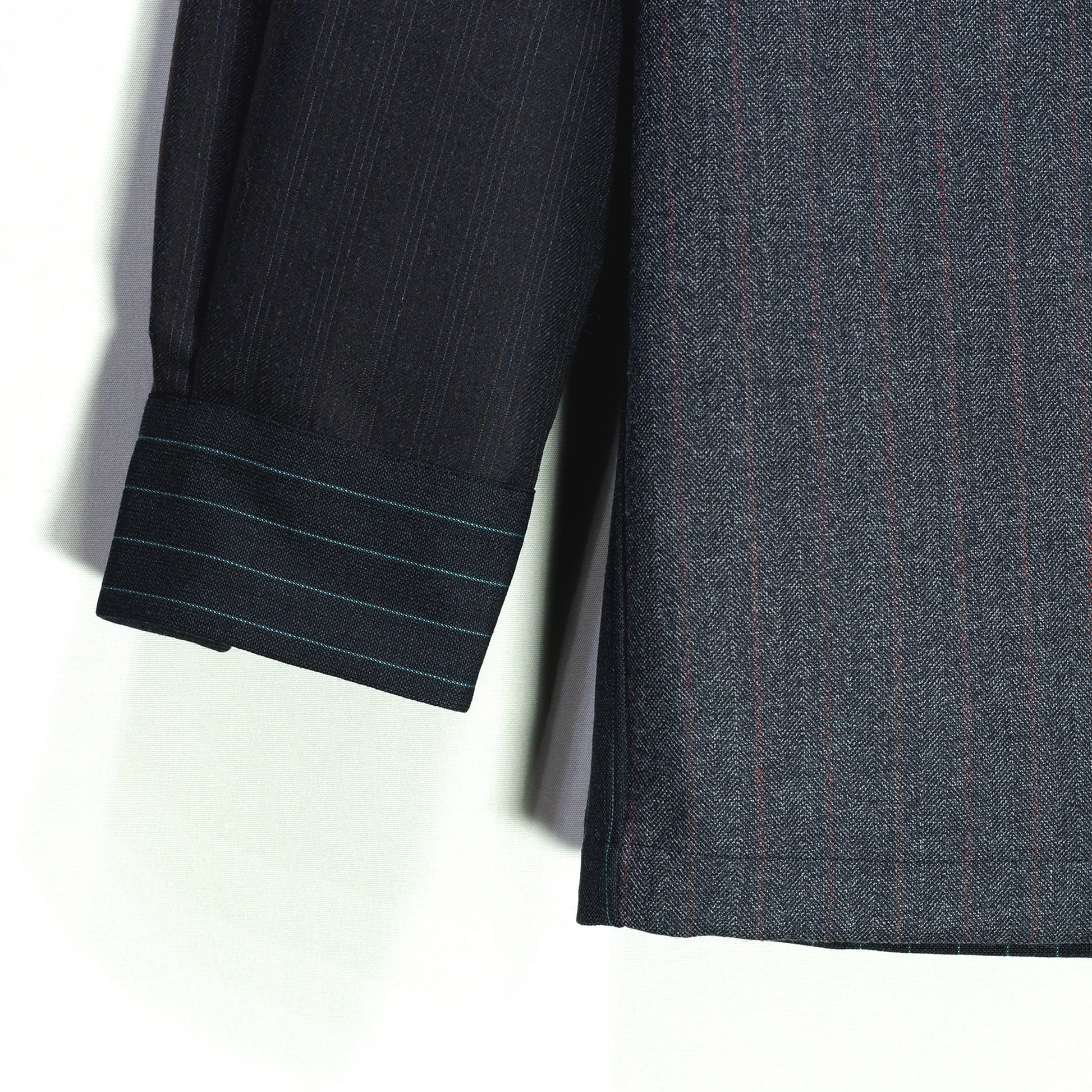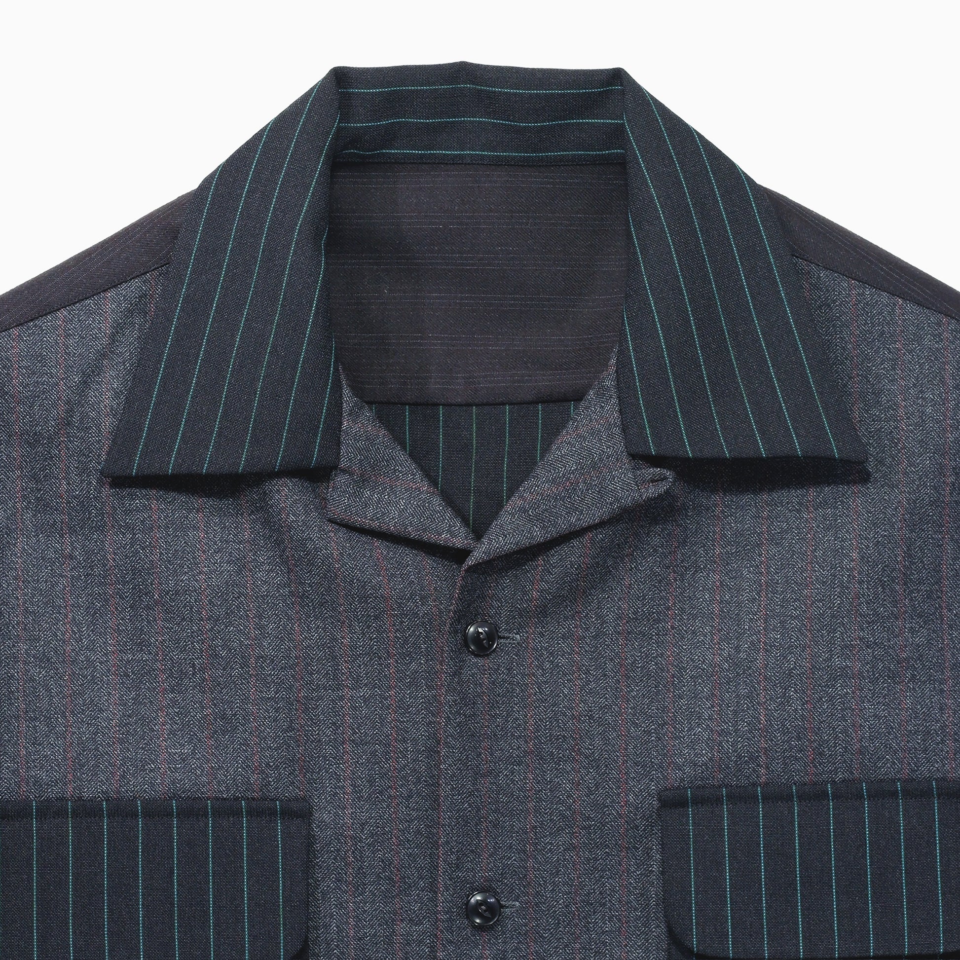 高級スーツ生地ならではの質感・重量感・表情を、シャツという日常的なアイテムに落とし込んだ特別な一着です。プロダクト自体がアーカイブであり、同一の再現ができない希少性こそが価値となっております。