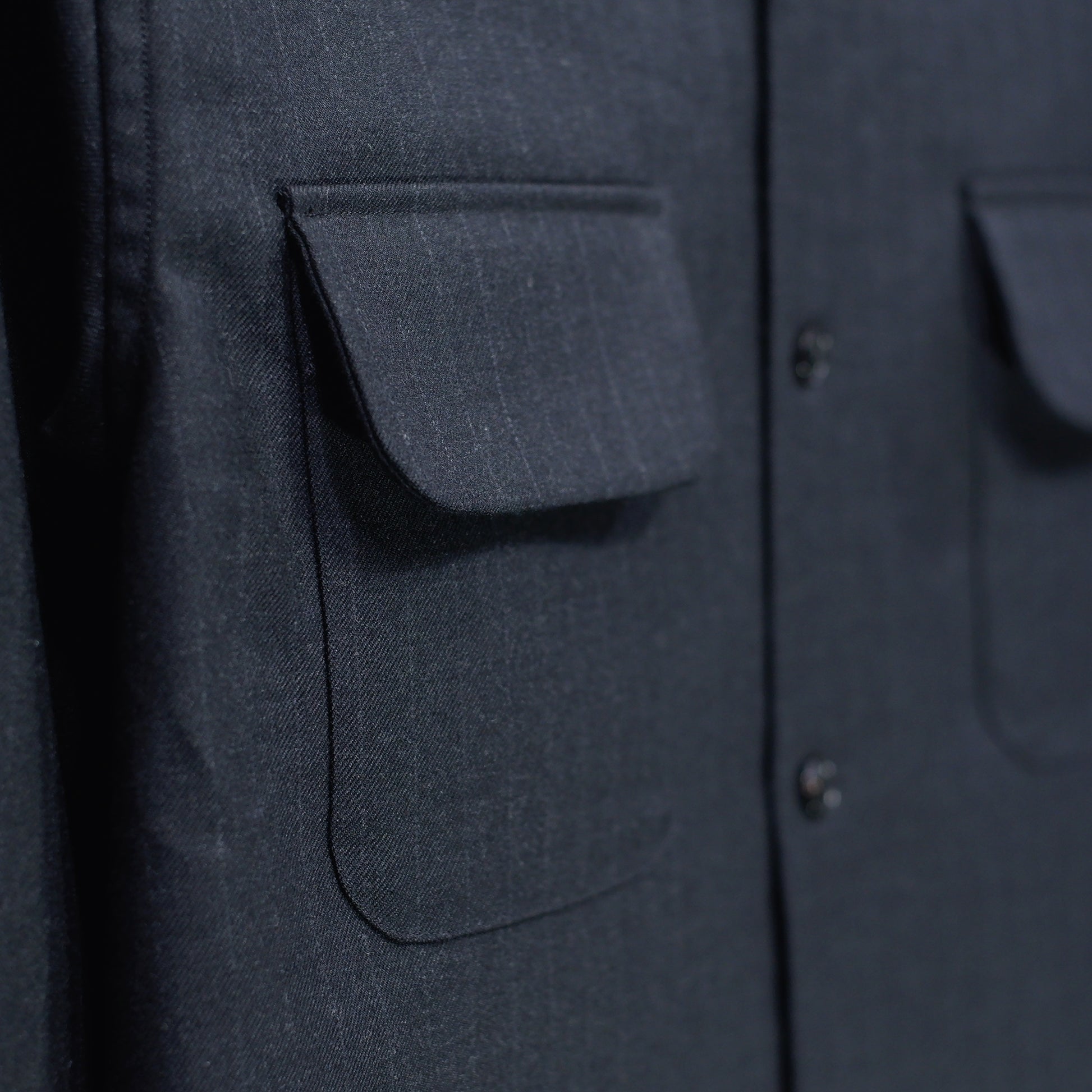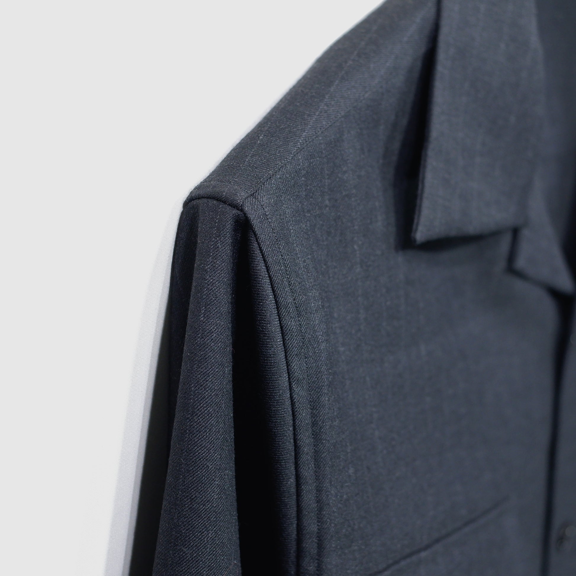 今回のオープンカラーシャツは、1950年代アメリカのヴィンテージシャツをベースにデザインしております。象徴的なループ留めのディテールを取り入れ、現代のバランスで再構築しています。